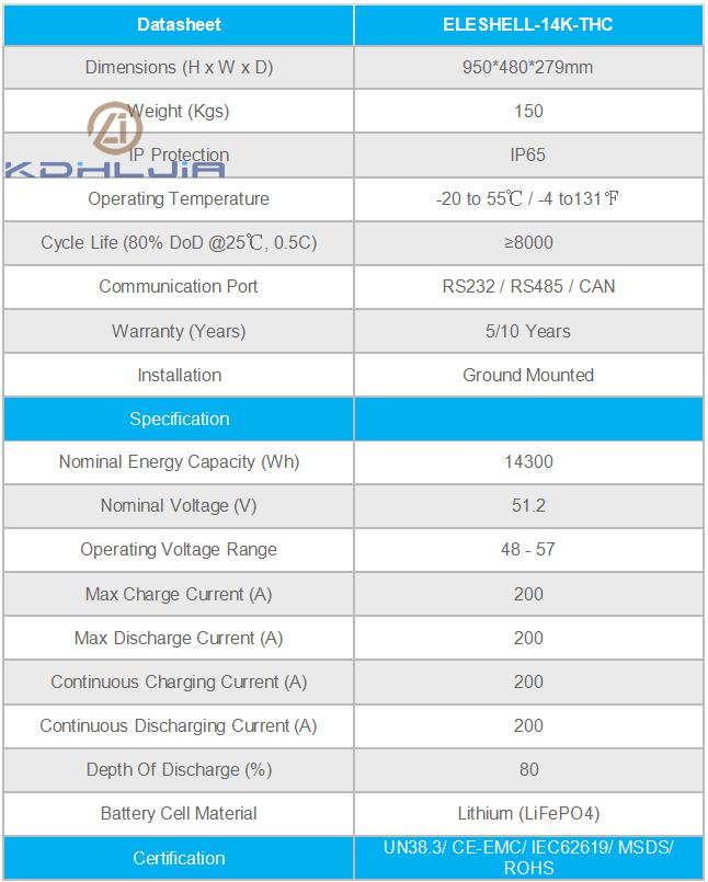 ELESHELL-14K-THC Thermally managed lithium battery For Solar System
