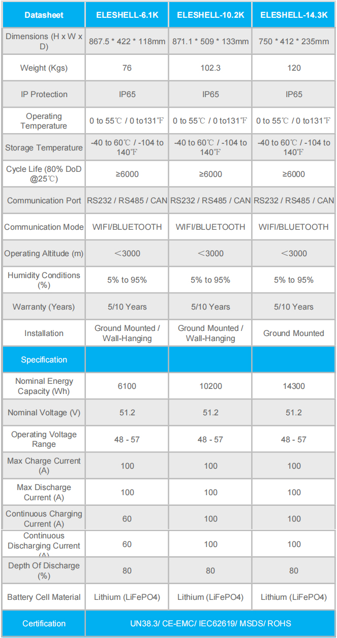 ELESHELL-6.1K Lifepo4 Lithium Powerwall For Solar System